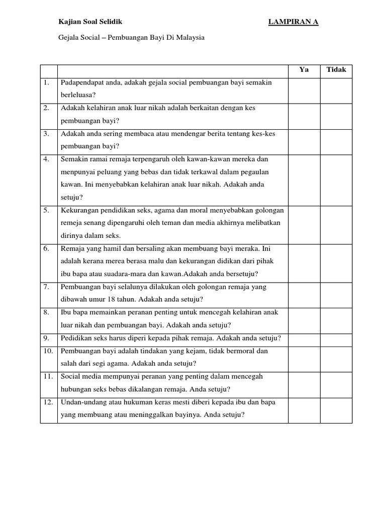 Kajian Soal Selidik Kes Pembuangan Bayi Di Malaysia Pdf