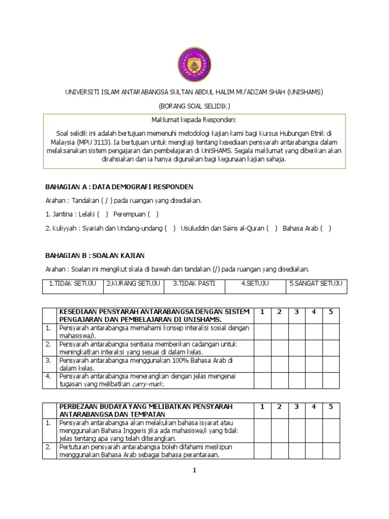 Borang Soal Selidik Hubungan Etnik 1 Docx Borang Soal Selidik Hubungan Etnik Fakulti Sains Universiti Tunku Abdul Rahman 1 Jantina Lelaki Course Hero